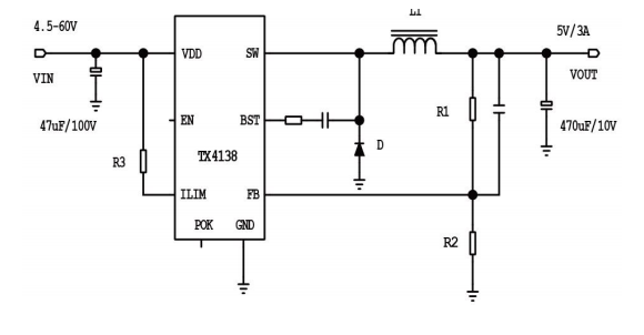 TX4138 4.5-60V 3A 大电流开关降压DC-DC恒压芯片