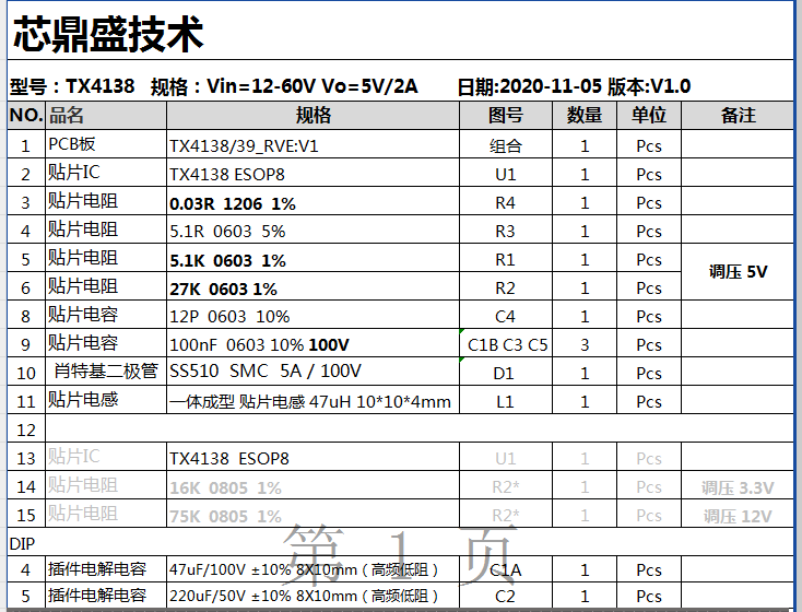 TX4138 是一款宽电压开关降压型DC-DC转换器。。。。芯片3A连续输出电流,,,,具有优良的负载和线路调节。。。。